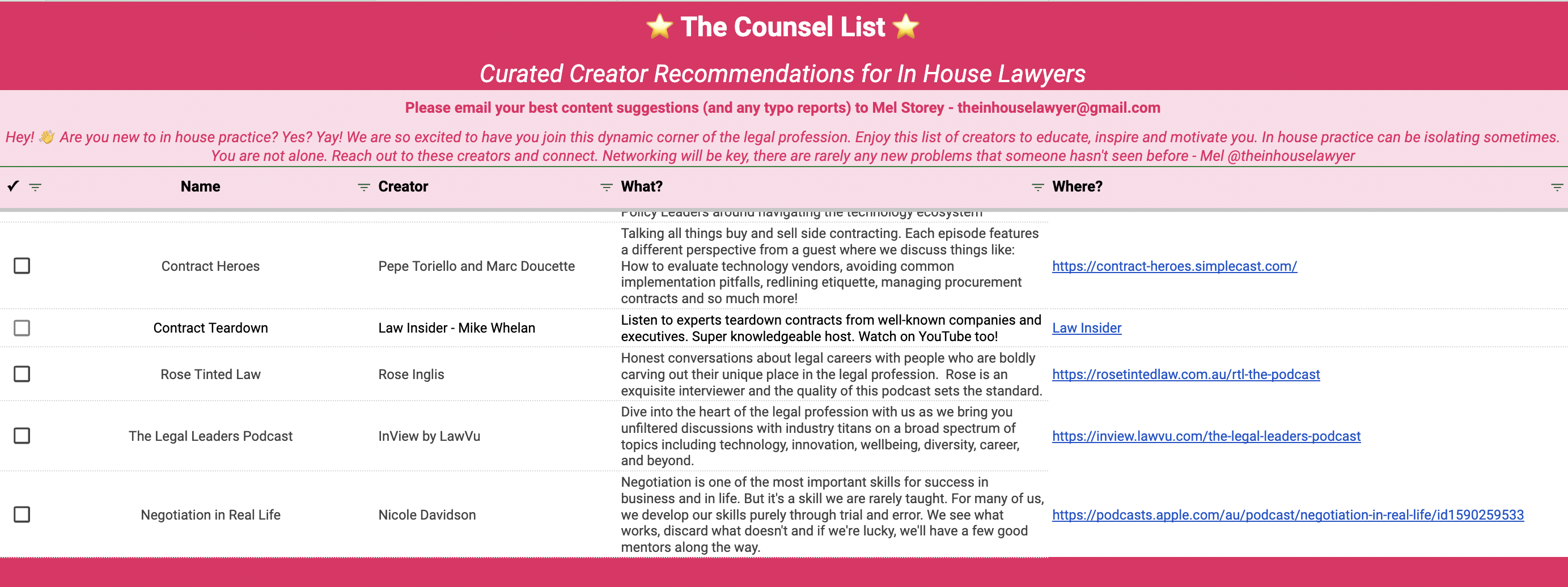 Two Law Insider educational resources—The Contract Teardown show and the Guides and Checklists collection—were recently added to The Counsel List.
