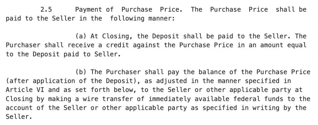 - “The purchase price shall be paid in the following manner: [Describe Payment Method and Schedule].”